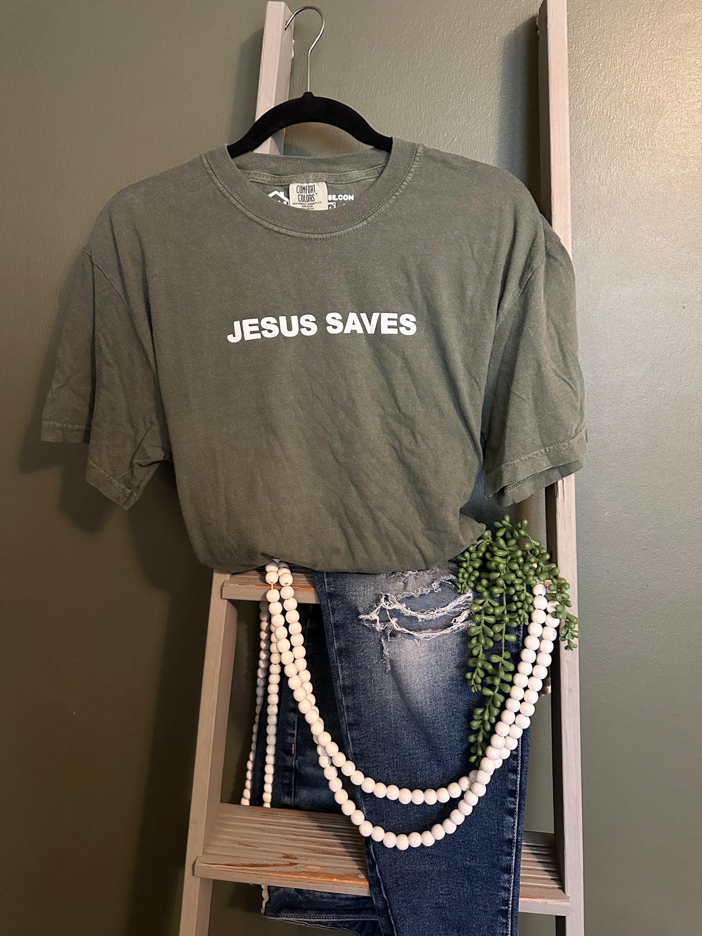 Jesus Saves Tee in Moss